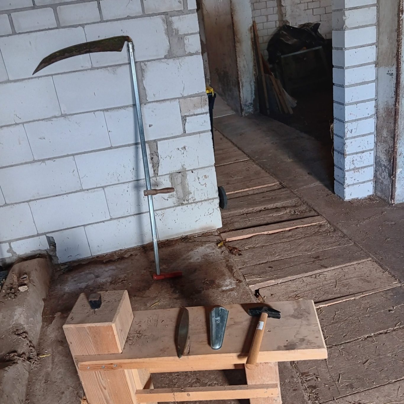 Irgendwann hatte ich dann keine Zeit mehr um mich mit der Sense zu beschäftigen. Erst im Rentenalter brach sich mein Umwelt-Bewusstsein wieder Bahn. Ich kaufte eine neue Sense und einen Wetzstein. Bald hatte ich auch das Mähen wieder drauf! Das Problem war: Ich konnte immer noch nicht dengeln! In meinem Umfeld gab es niemanden der es mir hätte beibringen können. Ein paar ungeschickte "Learning bei Dooing-Versuche" endeten damit dass ich mir ein neues Sensenblatt kaufen musste!
