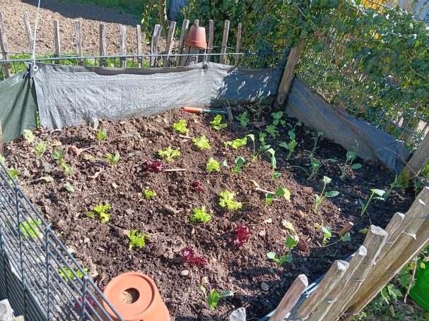 Möglicherweise werde ich jetzt im Sommer mit einer Salat- und Kohlrabi-Schwemme zu kämpfen haben. Doch wir haben ja Mitbewohner denen wir ab und zu einen Salat-Kopf überlassen können. Auch die Hühner und die Kaninchen werden sich über eine frische Abwechslung freuen. Das war zwar nicht der Plan. Doch es ist jetzt auch so recht!