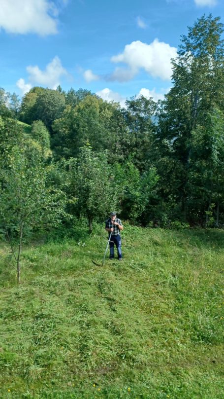 Bei meiner eigenen Befassung wurde mir bewusst dass ich eine ähnliche Vorgehensweise bei mir in Hausnähe nicht umsetzen kann. Ich kann hier noch so naturnah wirtschaften. Doch ein Mindestmaß an Optik und Ordnung muss herrschen. Ich wohne ja nicht allein im Haus. Und eine chaotische Wildnis über ein gewisses Maß hinaus kann ich meinen Mitbewohnern nicht zumuten. Hier im direkten Haus-Umfeld muss ich daher doch einige Kompromisse eingehen.